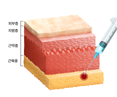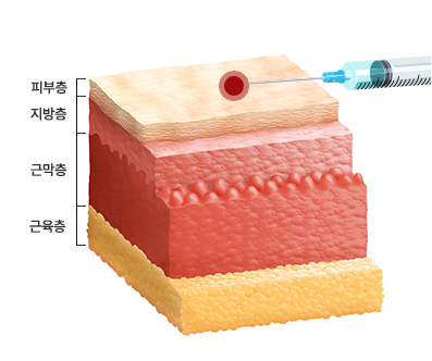 시술원리 보툴리늄톡신을 근육의 국소부위에 소량으로 주입하여 마비 또는 근육 퇴축 보툴리눔톡신을 메조 테라피 형식으로 피부의 여러층에 소량씩 나눠서 주입