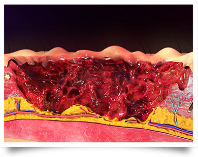 3도 화상은 화염, 증기, 기름, 화학물질, 고압 전기에 의해 생길 수 있습니다. 표피, 진피의 전 층과 피하지방층까지 손상이 파급된 상태로서 창상부위의 조직 괴사가 심해 부종이 심한 편이지만 오히려 통증은 별로 없습니다. 전층 화상은 가피를 제거하고 피부 이식을 하지 않으면 완전히 치유되지 않습니다.