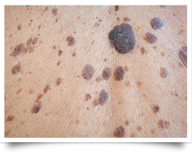 지루 각화증의 일종으로 피부노화 현상 중 하나입니다. 주로 30세 이후로 눈에 띄지 않게 발생하기 시작하여 40~50대 이후 뚜렷하게 나타나는 경우가 많습니다. 편평하게 나타나거나 울퉁불퉁하게 튀어나온 형태를 보이기도 합니다.